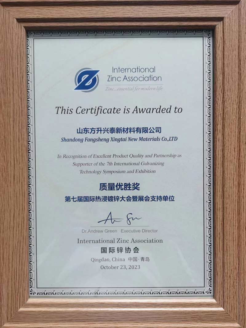 第七界國際熱浸鍍鋅大會我公司獲得獲得質(zhì)量優(yōu)勝獎